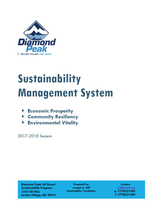 Sustainability Planning and Implementation via Performance Benchmark and Certification at Diamond Peak Ski Resort in Incline Village, NV.
